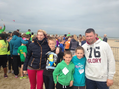 Ouders, tantes, vrienden, familie, marrains, iedereen mocht meejoggen op het zanderige parkoer!